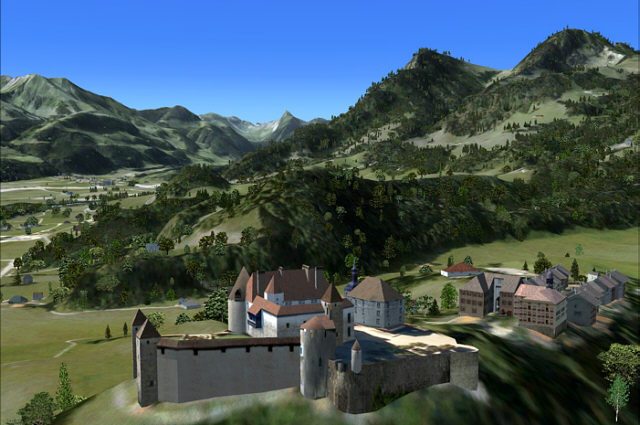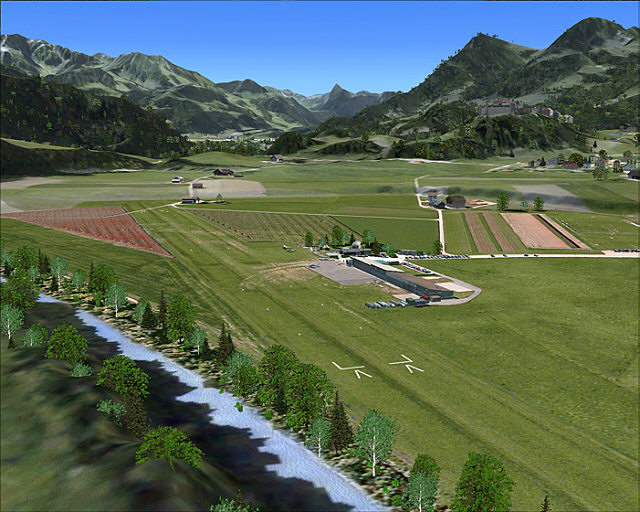 Die Szenerie aller Flugplätze basiert auf Luftfotos mit einer Auflösung von 25cm/Pixel. Autoverkehr in der Umgebung sowie saisonale Anpassung der Vegetation ist wie bisher inbegriffen. Nebst allen Gebäuden sind auch Flughindernisse wie Hochspannungsleitungen in der Anflugschneise Teil der reichhaltig bestückten Objektszenerie, zu der auch viele markante Gebäude wie Hotels, Industriebauten oder das Schloss Gruyère gehören. Animiert sind wie gewöhnlich der Windsack und - exklusiv bei den Kleinflugplätzen - die Landekreuze (Lande-T) je nach Windrichtung. Die hochauflösenden Fototexturen wirken so echt, dass man kaum genug davon bekommen kann. Eine sehr detaillierte Dokumentation mit allen Anflugkarten rundet das hochwertige Produkt wie gewohnt ab.