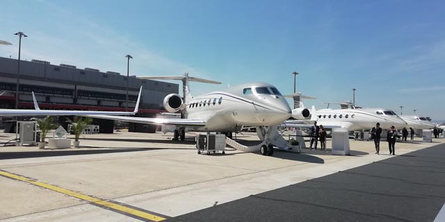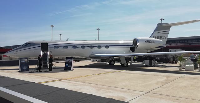Gulfstream ist auf dem Außengelände an der EBACE 2019 in Genf mit einer G280, einer G500, einer G550, einer G600 und einer G650ER vertreten. Bei der G500 und G600 handelt es sich um die neusten Gulfstream Jets. Die G650 ist seit Ende 2012 am Markt.