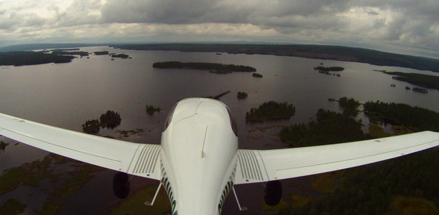 Von hier aus wurde dann die Expedition wieder ins äußerst dünn besiedelte Landesinnere Lapplands fortgesetzt mit Zwischenstopps auf unterschiedlichst präparierten Landefeldern. Schnell wurde klar, dass das Tundra-Fahrwerk kaum an seine Belastungsgrenzen zu bringen war und auch tiefere Unebenheiten und Löcher problemlos in Kauf nahm, ohne das dabei seine dämpfendeWirkung merklich beeinträchtigt war. Auch die für diesen Einsatzzweck eher ungewöhnliche Tiefdeckeranordnung stellte sich unter keiner der getesteten Bedingungen als merklicher Nachteil heraus. In Härnösands, nahe Sundsvall, wurde eine mit ungleichmäßigem gravel notdürftig als Piste markierte Oberfläche ebenfalls als geeignet eingestuft. Keiner der angeflogenen Plätze war besetzt, sofern überhaupt mit Infrastruktur versehen. Dies war nicht weiter nachteilig, jedoch stellte sich nach und nach heraus, dass am Sonntag in Schweden die allermeisten (auch internationale) Flughäfen geschlossen sind und folglich kein Kraftstoff erhältlich ist. So musste nochmals in Bromma (Stockholms City-Airport) getankt werden, bevor weiter in Richtung Vätternsee geflogen werden konnte.